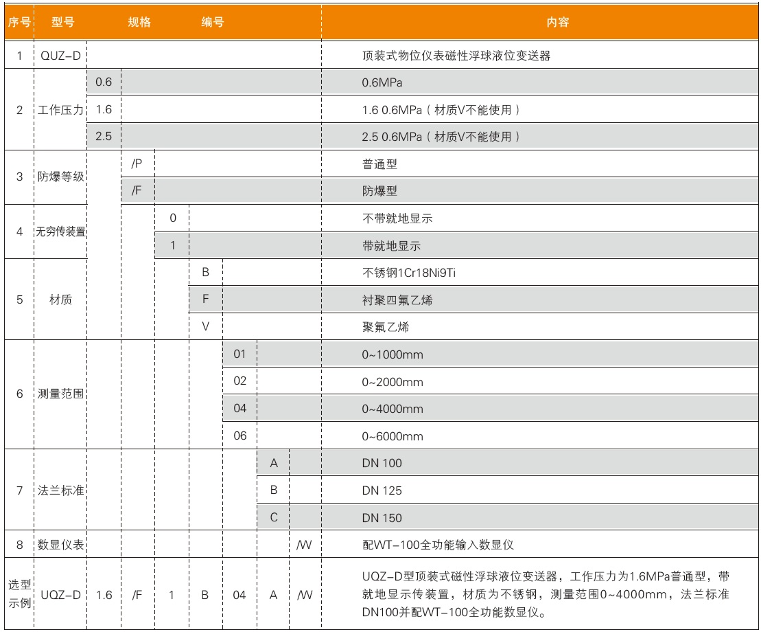UQZ-D型頂裝式磁性浮球液位變送器選型要求